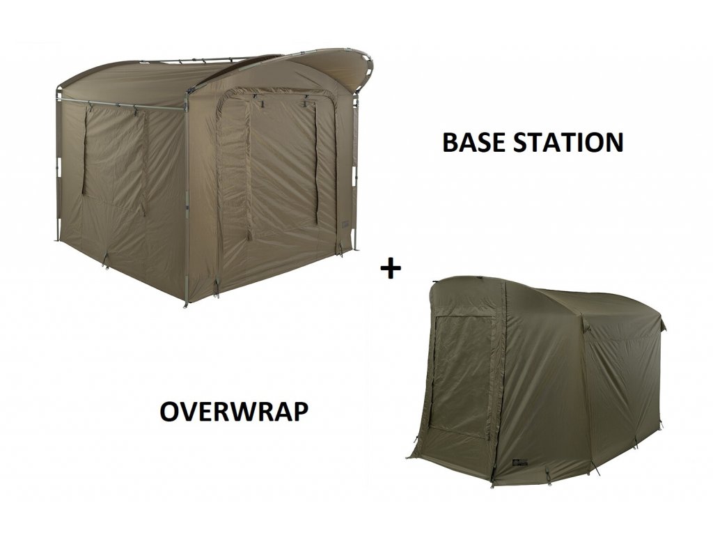 Přehoz: Plnohodnotný přehoz umožňuje výrazně zvýšit užitnou hodnotu a komfort přístřešku Base Station. Velká okna na předním i zadním panelu zajišťují dokonalé větrání. Dvojitý plášť zlepšuje vnitřní klima ve vysokých i nízkých teplotách a zároveň minimalizuje kondenzaci vody na vnitřním plášti. Použitím přehozu vznikne prostorná předsíň, která zvětšuje využitelný vnitřní prostor. Zároveň se zvýší stabilita i odolnost proti větru. V silném větru je vhodné přístřešek s přehozem zajistit kotvícími lanky.