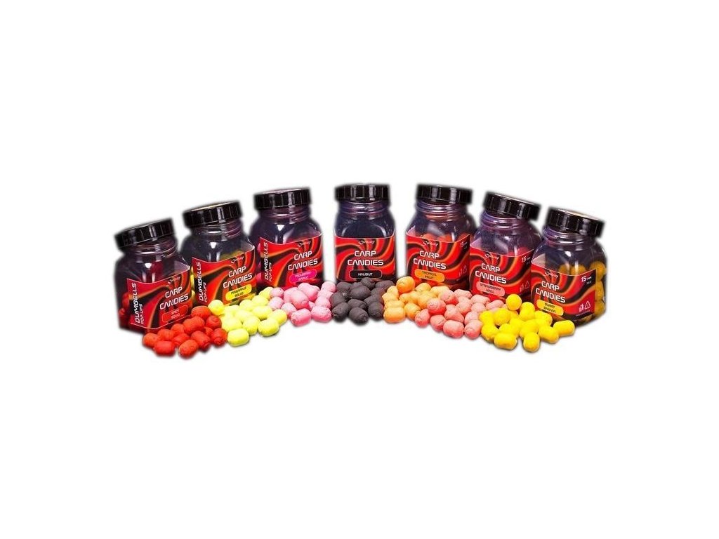 Carp Candies jsou vysoce atraktivní plovoucí nástrahy válečkovitého tvaru, které jsou měkčí než ostatní plovoučky a jejich celkový signál je tak pod vodou mírně odlišný, což dokáže zmást i velmi zkušené ryby. Jejich velmi, ale skutečně velmi vysoká atraktivita je dána i reflexními barvami, takže je projíždějící ryba nemůže přehlédnout. Hlavní předností Candies je ale to, že jsou doslova nacucané atraktivním mixem esencí, sladidla a chuťových stimulátorů. Díky těmto vlastnostem působí na ryby mezi ostatním krmením jako pověstná třešnička na dortu, kterou si chce každý vychutnat okamžitě.