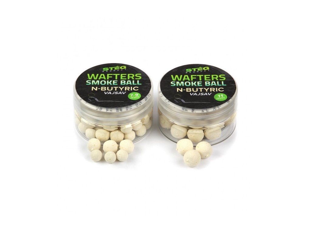 Horká novinka od maďarské společnosti STÉG - WAFTERS SMOKE BALL! Jsou to rozpustné, neutrálně vyvážené nástrahy ve velikosti 11mm s výrazným kouřovým efektem a silným vizuálním a pachovým signálem. Návrat ke kořenům, resp. k původní složitější, časově náročnější, ale zcela unikátní receptuře!
