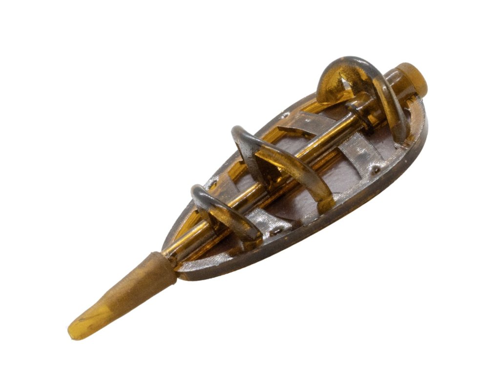 - Součástí krmítka je speciální klip pro rychlou výměnu návazce. Použitím klipu zafixujete krmítko k montáži.