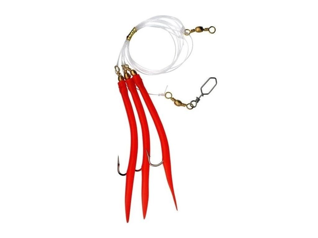 Spolehlivý návazec s trojicí gumových makků, který si získal důvěru rybářů po celé Evropě. Vhodný pro lov ze břehu i z lodi, ideální pro pilkrování, jigging nebo chytání s nástražní rybou. Stačí připnout k hlavnímu vlasci a jsi připraven na akci.