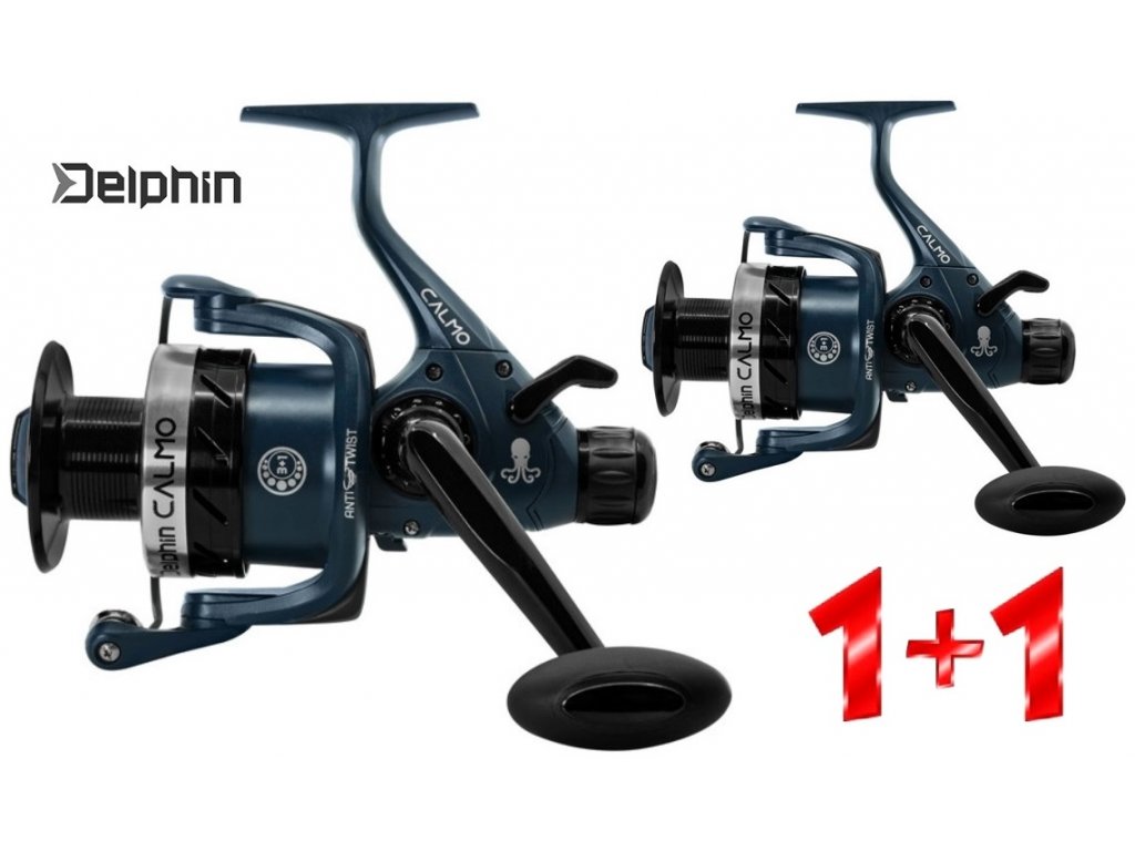 Rybářské navijáky Delphin Calmo 6T DP 6000 s volnoběžnou brzdou, odolnou konstrukcí a kovovou cívkou. Cenově zvýhodněná akce 1+1.
