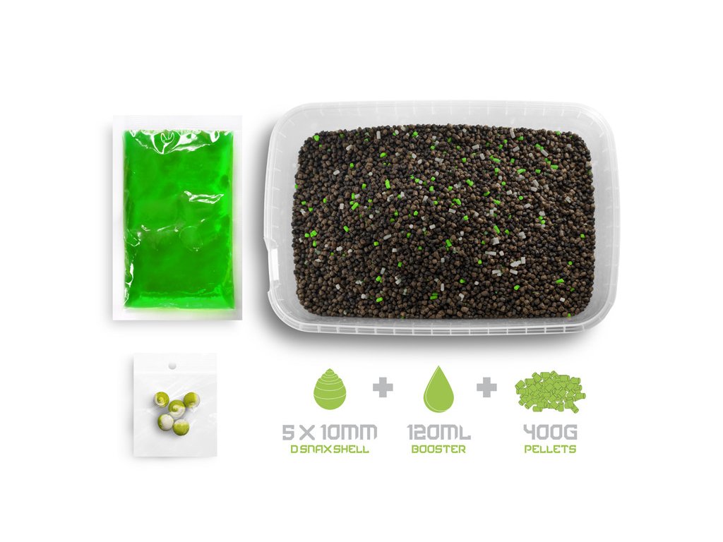 Úspěch u vody většinou spočívá v efektivitě a připravenosti. Právě proto jsou zde praktické pellet boxy, které poskytují vše co rybář potřebuje při lovu na method feeder. Tento pellet box obsahuje kombinaci nutričně výživných a ochucených, barevných mikropeletek, chuťově identický booster pro přípravu krmné směsi a balení neutrálně vyvážených nástrah D-SNAX SHELL.