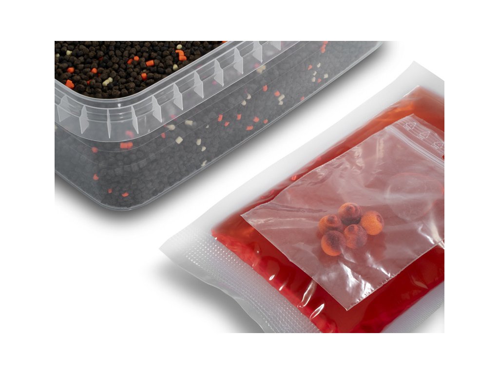 Základ krmné směsi tvoří mikro pelety bohaté na bílkoviny v kombinaci s ochucenými peletkami. Tato kombinace aktivně šíří potravní signál a okamžitě stimuluje smysly ryb v okolí. Díky vyladěnému složení je tento set vhodný pro celoroční lov. Zaboostrované mikropeletky můžete stejně dobře využít i do PVA sáčku či síťky.