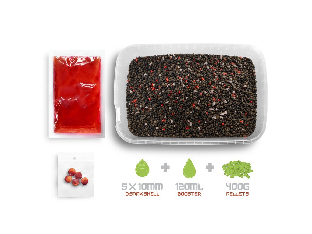Úspěch u vody většinou spočívá v efektivitě a připravenosti. Právě proto jsou zde praktické pellet boxy, které poskytují vše co rybář potřebuje při lovu na method feeder. Tento pellet box obsahuje kombinaci nutričně výživných a ochucených, barevných mikropeletek, chuťově identický booster pro přípravu krmné směsi a balení neutrálně vyvážených nástrah D-SNAX SHELL.