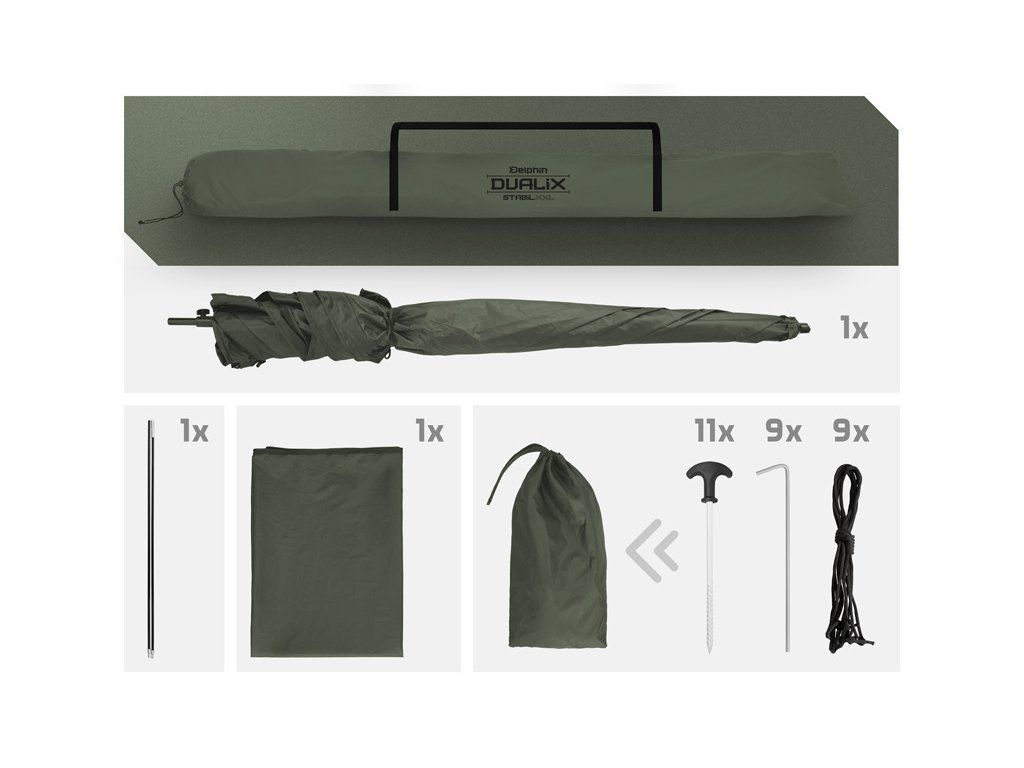 DualiX STABIL je prémiový model deštníku od značky Delphin, poskytující neobvyklý prostor a komfort, čímž vytváří ideální zázemí během vašich vycházek k vodě.