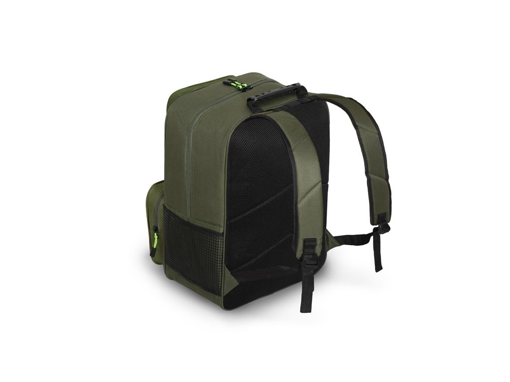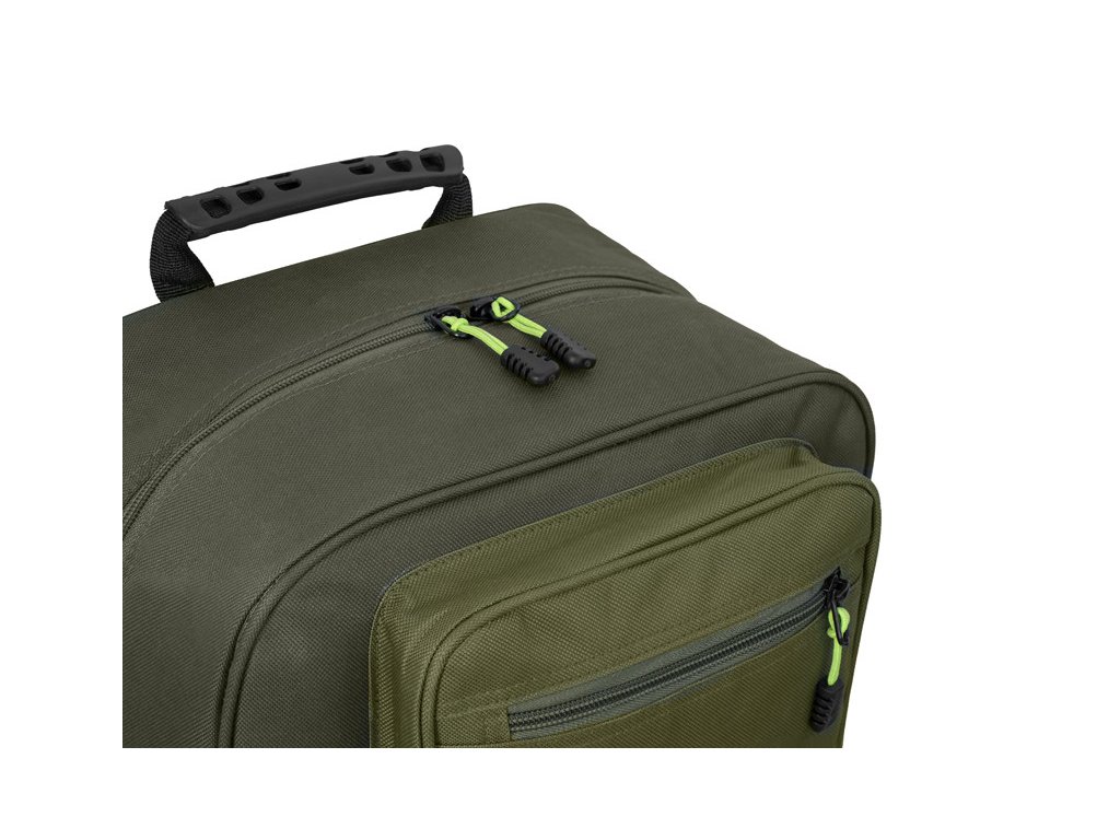 Důmyslně promyšlené rozložení dělí prostor na velkou hlavní komoru a dvě přední kapsy. Hlavní část nabízí dostatek místa pro oblečení i rybářské příslušenství a navíc je vybavena vyztuženou přepážkou.
