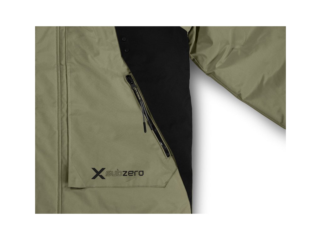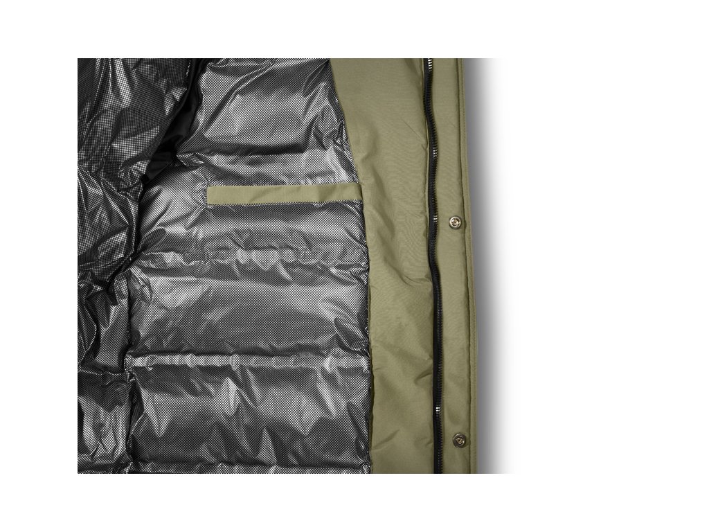 Spodní lem bundy lze stáhnout gumičkou z obou stran, což zvyšuje tepelnou izolaci, chrání záda a zejména kříže před větrem. Po stranách se nacházejí prostorné kapsy se zipem, které díky speciálnímu šití poskytují dostatek místa k uschování například termosky s teplým čajem. Ve vnitřní části se nachází praktická kapsa vhodná na doklady nebo jiné cennosti.