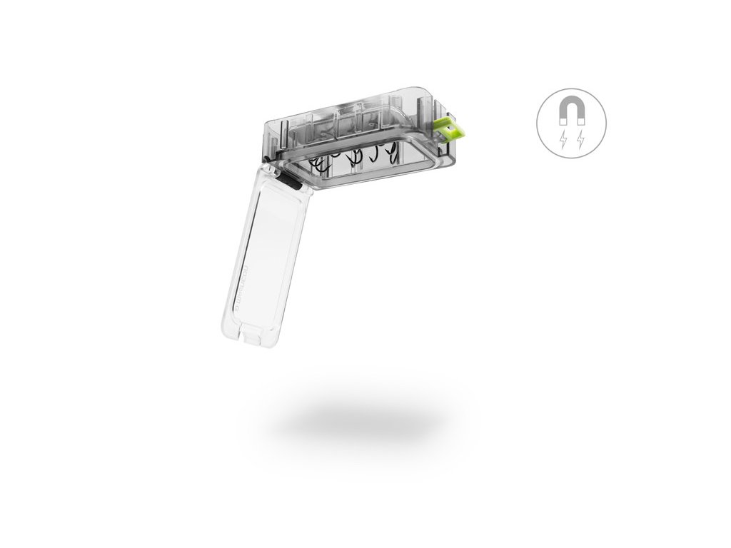 Krabička je vyrobena z odolného, transparentního plastu, který zaručuje dlouhou životnost i při pravidelném používání v náročných podmínkách. O bezpečné uzavírání se stará pevný plastový klip, který spolehlivě chrání celý obsah krabičky před nechtěným otevřením či vypadnutím.
