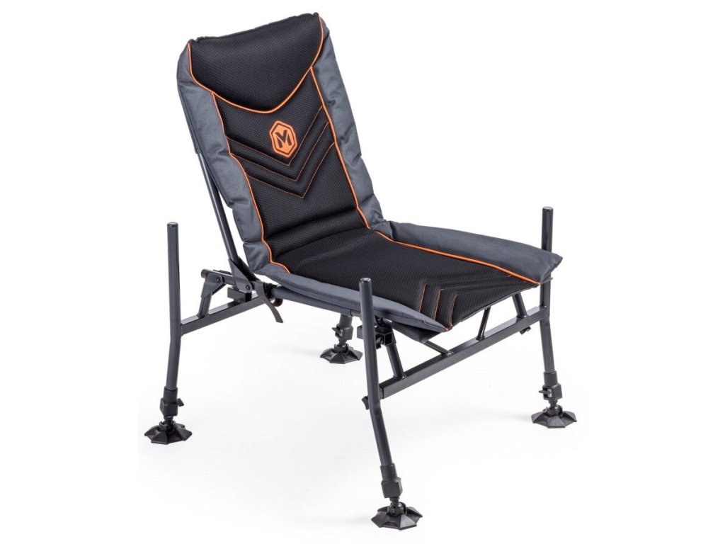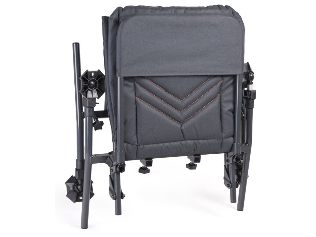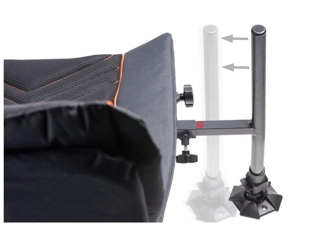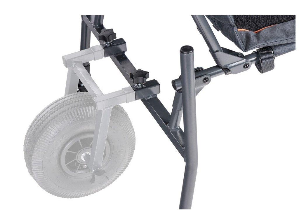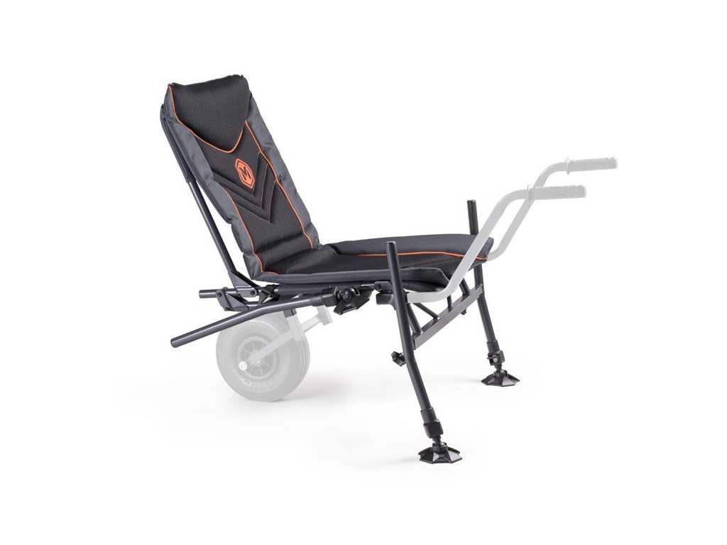 Je osazeno čtyřmi teleskopickými nohami pro snadné ustavení na nerovném břehu. Nohy mají průměr 25mm a proto umožňují nasazení nejrůznějšího příslušenství, které je pro tento průměr snadno dostupné. Přední nohy umožňují variabilní vysunutí do stran a tím i dosažení ještě vyšší stability. Anatomické tvarování matrace je podpořeno i tvarováním rámu sedáku. Optimálně zvolené polstrování zajišťuje vysoký komfort i při dlouhém sezení. Toto křeslo může být doplněno o unikátní přepravní systém (dostupný samostatně). Ten z křesla během několika vteřin udělá stabilní transportní vozík, který zajistí pohodlnou přepravu celé vaší výbavy.