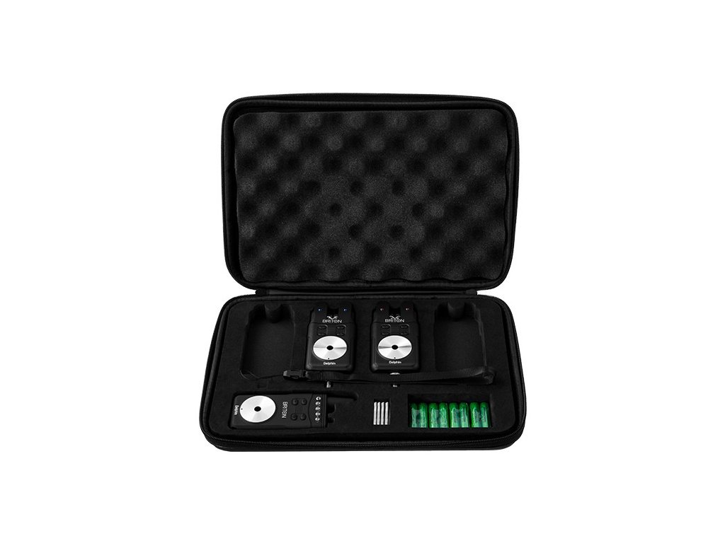 Delphin bezdrátová sada signalizátorů záběru s příposlechem Briton 2+1 s moderními funkcemi, spolehlivou elektronikou a odnímatelnými Snag Gear držáky prutů. Včetně polstrovaného přepravního kufříku a baterií.