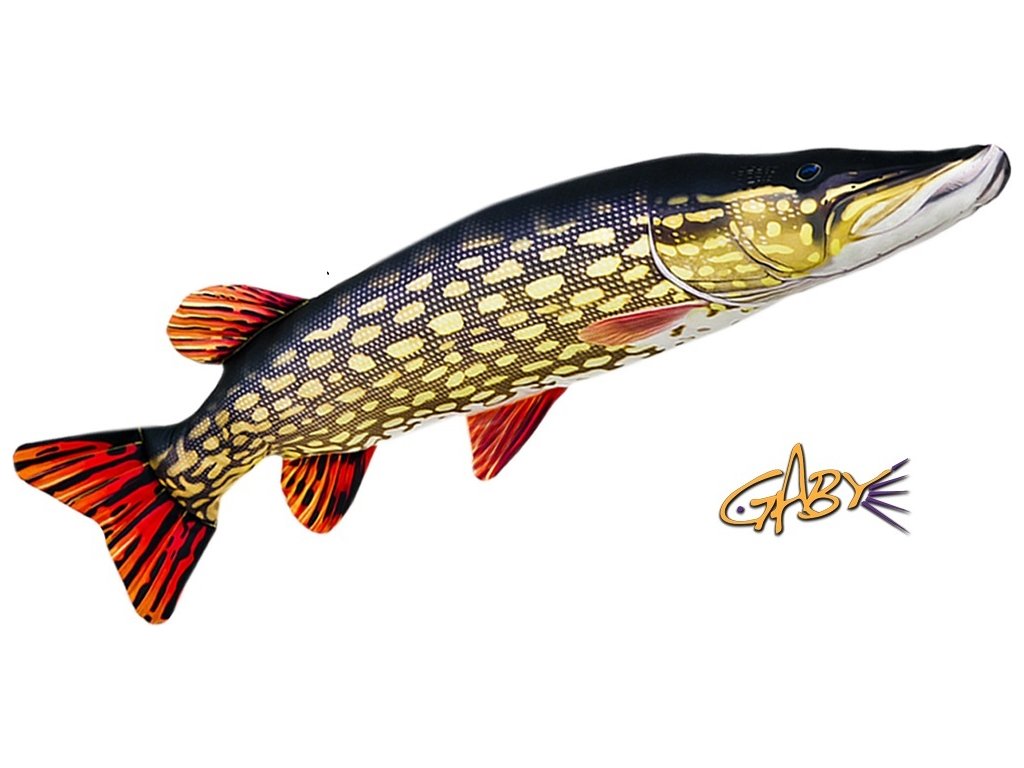 Krásný, skutečně jedinečný a velký polštář GABY Štika maxi, který je nejen skvělou hračkou nebo dekorativním doplňkem, ale i vhodným a originálním dárkem pro rybáře a specialisty na štiky.