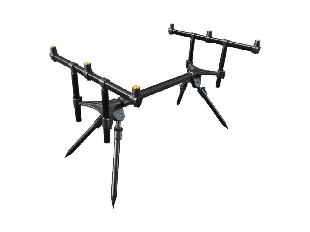 Rod Pod System Bruce Fortress 3 lze sestavit během několika sekund. Je lehký a stabilní, má čtyři nastavitelné nohy a nastavitelné výškové tyče, které se hodí pro jakékoli místo k rybaření. Stačí už jen přidat indikátory záběru nebo podložky pod pruty a můžete rybařit.