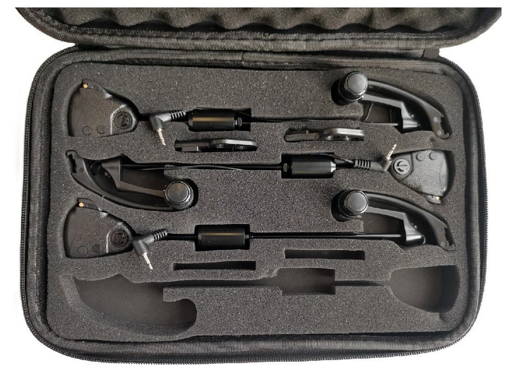 K upevnění na stojan slouží zasouvací adaptér se třemi otvory osy umístění signalizátoru (swingeru).