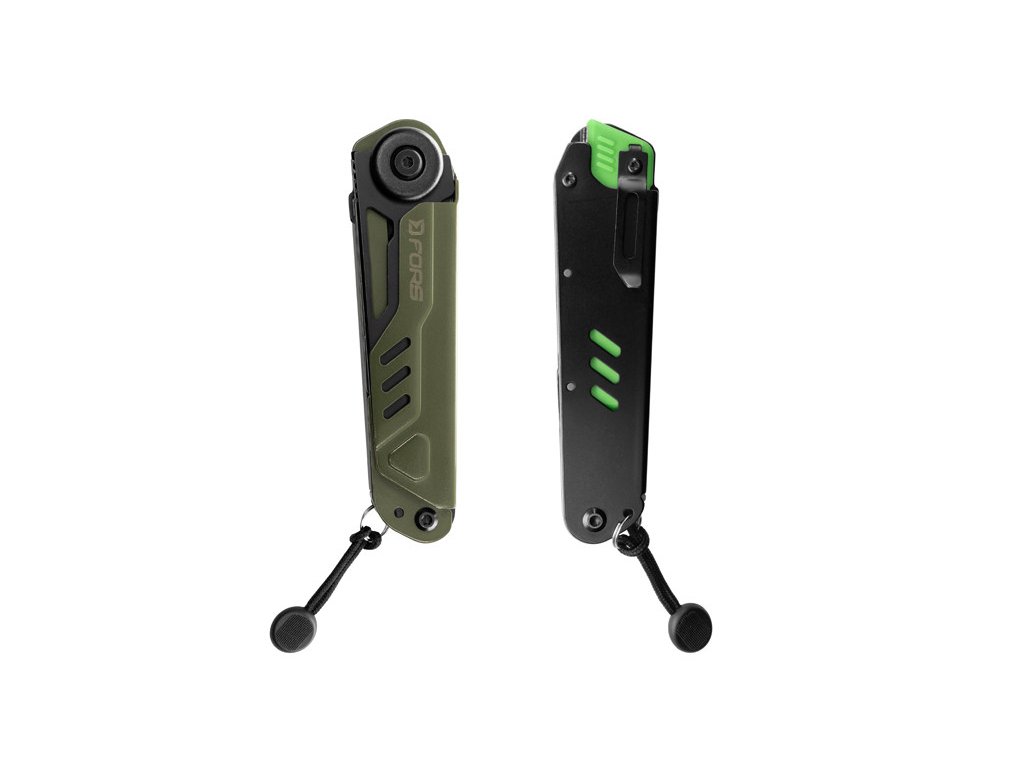 Vše je navíc bezpečně uloženo v pevném textilním pouzdře, které je připraveno k uchycení na opasek, takže své vybavení můžete mít neustále po ruce. Nůž FORS šetří místo ve vaší výbavě a zároveň poskytuje komfort, který oceníte při pobytu v přírodě, turistice, kempování nebo běžné údržbě v dílně či autě.